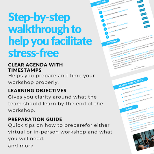 Get step-by-step guidance on how to facilitate meetings, workshops and retrospectives, with templates in Miro or PowerPoint.