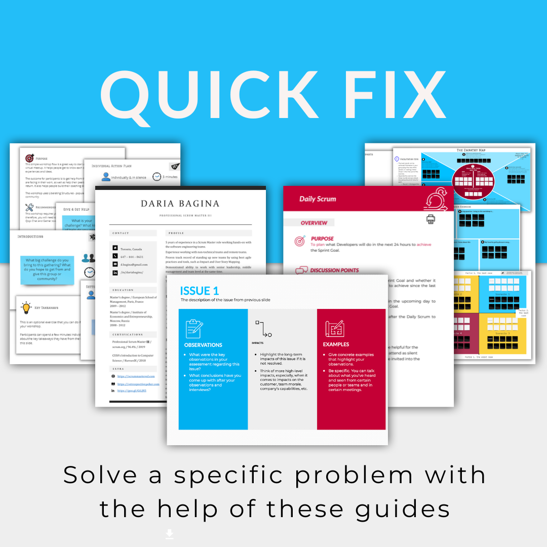 Comprehensive guides for Agile professionals going into detail on specific topics with...